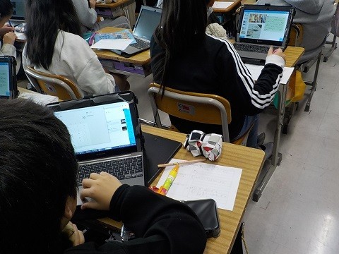 国語の授業で、タブレットを使って発表ノートにおすすめの内容をまとめました。結果をクラスで交流しています。