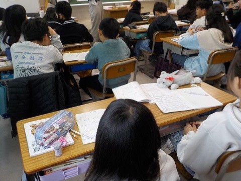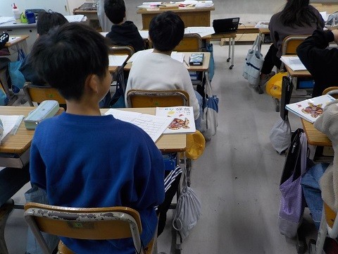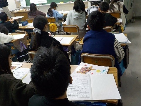 分数です。分母が違う分数の大きさについて考えていました。わける数(分母)が大きいほど、小さくなることを確認していました。