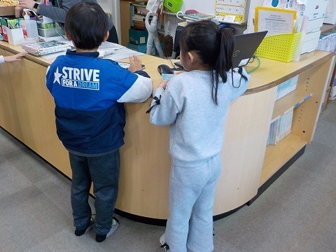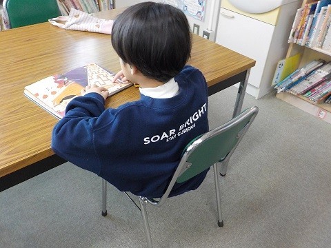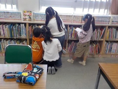 図書の時間です。読みたい本を選んでいました。