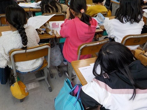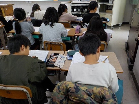 2学期の復習を行っていました。かけ算の筆算やあまりのあるわり算のプリントを行っていました。