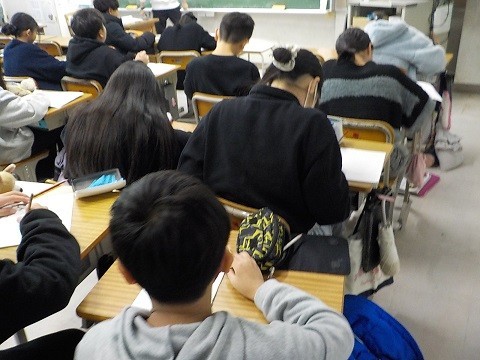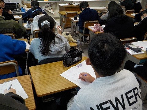 小数と分数の問題を行っていました。計算間違いに気を付けて取り組んでいました。