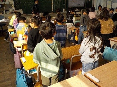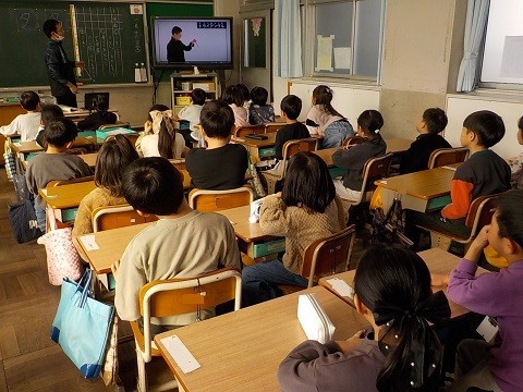 とても楽しそうに歌っていました。その後、タンブリンやトライアングルの使い方を、デジタル教材で確認していました。