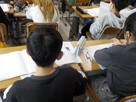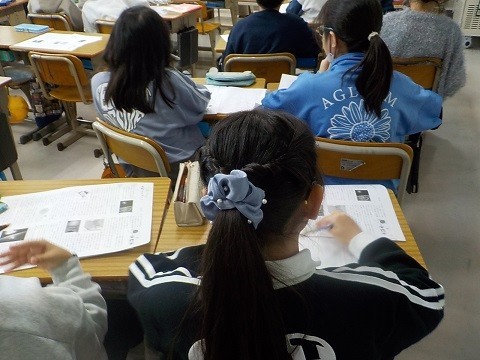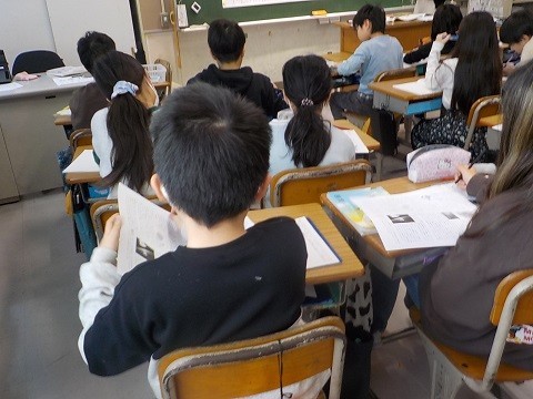 説明文「風船でうちゅうへ」です。教科書を読み、「はじめ」「おわり」の大切な言葉を考えていました。