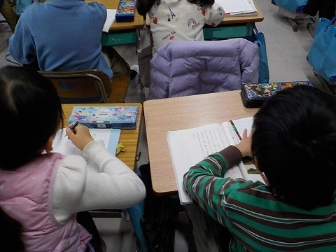 説明文「ロボット」の学習です。第五場面を読み、気が付いたことを交流していました。