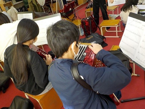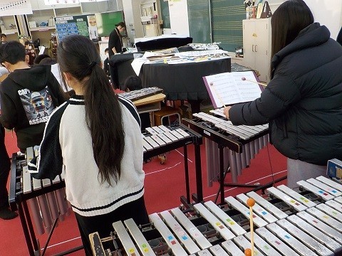 卒業コンサートに向けて、各楽器に分かれて練習していました。
