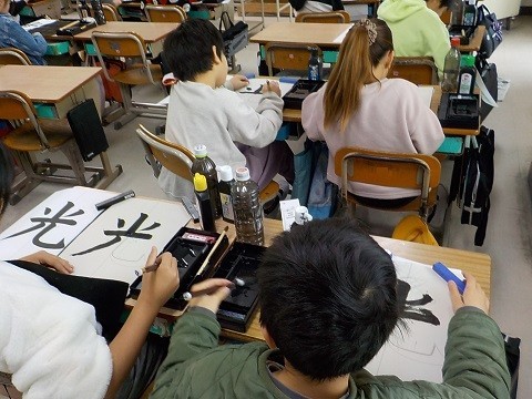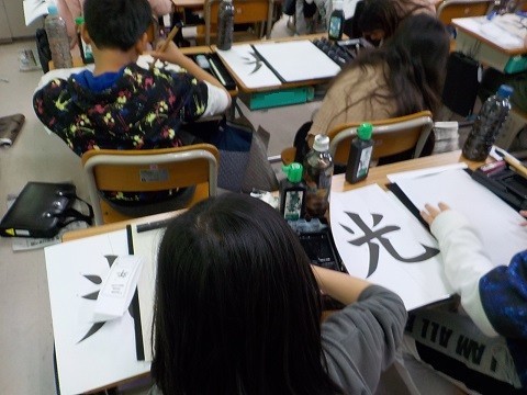 毛筆で、光を書いていました。ていねいに取り組んでいます。