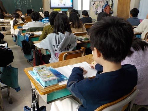 「伝わる言葉で表そう」の学習です。教科書の絵をみて、どのようにすれば気持ちが伝わるのかを考えていました。