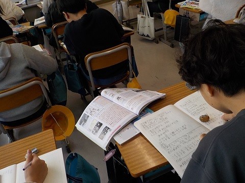 新しい国づくりについての学習です。日本国憲法について、教科書や資料集を使って学習していました。
