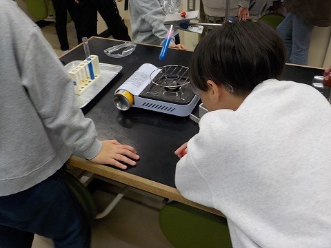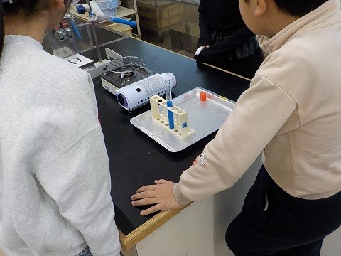 もののあたたまり方の学習です。水はどのように温められるのかを調べる実験を行っていました。