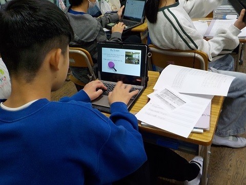 「自分の将来」を紹介するパワーポイントを、英語を使って作成しています。
