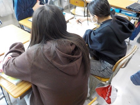 海の命の学習です。物語を読む良さについて考え、グループで交流していました。