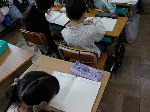 文章の問題から式をつくり、計算のしかたを考えていました。