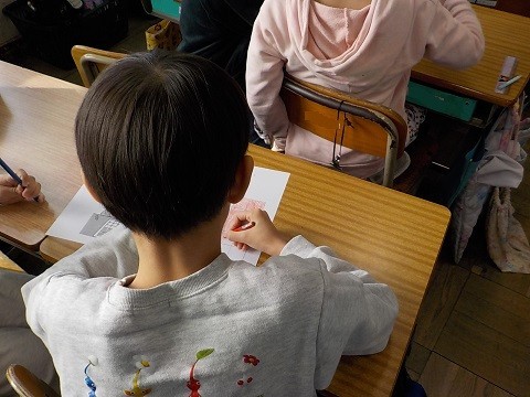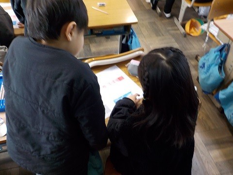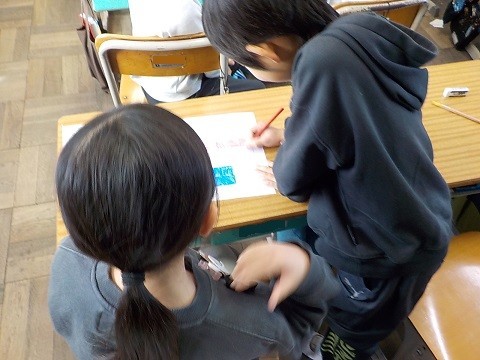 広さの学習です。グループでじんとりを行い、どちらが広いかを考えていました。