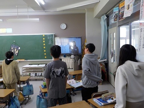 テレビ朝礼 公開日 2026/02/09 更新日 2026/02/09 学校行事 テレビ朝礼の様子です。表彰と、生徒指導の先生からのお話がありました。まだまだ寒い日が続きます。体調管理に気を付け、がんばりましょう!
