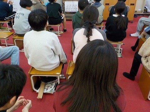 「チャレンジ」と「上をむいて歩こう」の歌詞について考えていました。どのように歌えばいいのかを考え、交流していました。