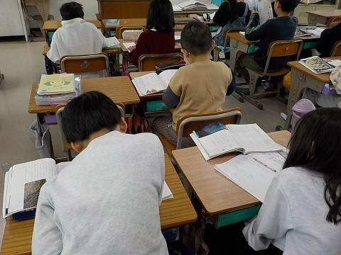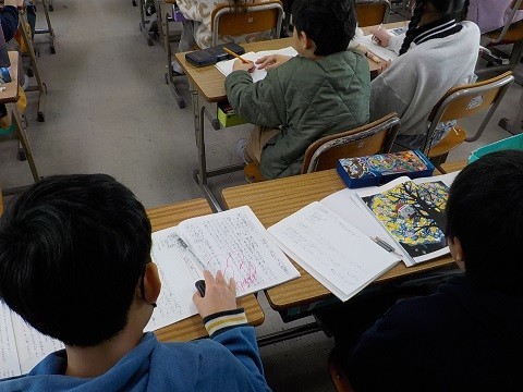 「モチモチの木」の学習です。教科書を読み、ノートに感想を書いていました。
