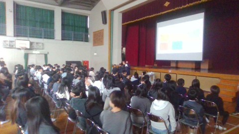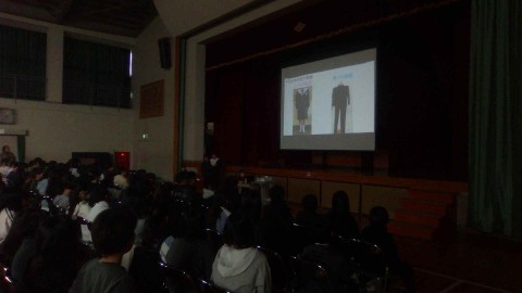 学校生活の紹介では,写真やクイズを交えながら楽しくお話してくださいました。