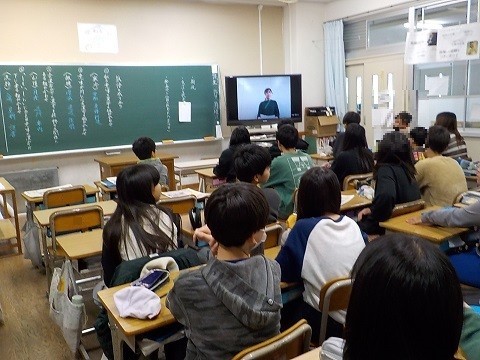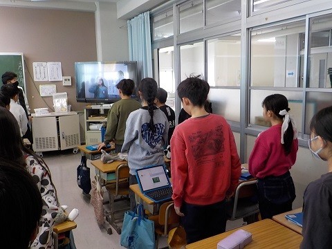 テレビ朝礼の様子です。まずは、元気よく校歌を歌いました。