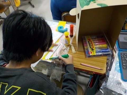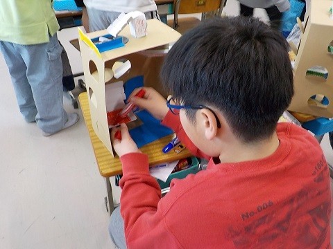 「ビー玉だいぼうけん」です。箱の内側に、迷路や飾り付けを行っていました。
