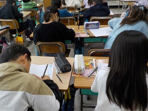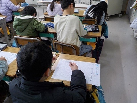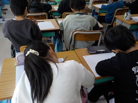 2年生で学習した漢字をワークシートに書いていました。たくさん学習しましたね。