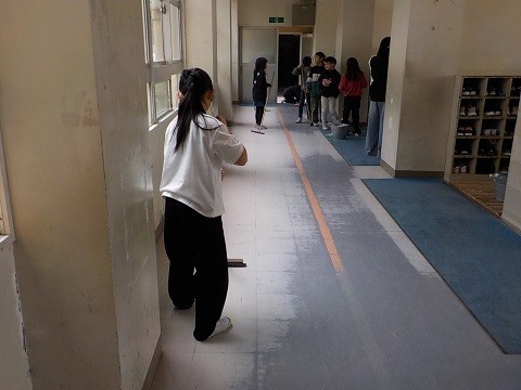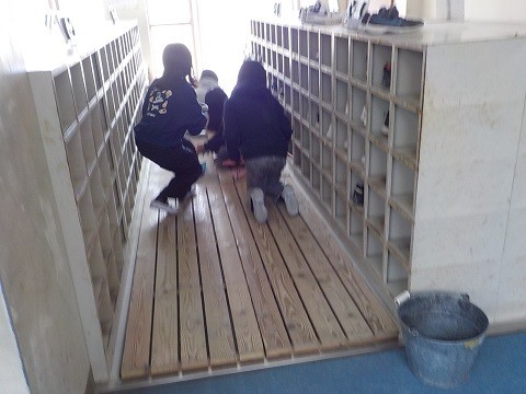大そうじの様子です。協力してがんばっています。