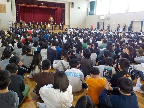 令和8年度始業式 公開日 2026/04/08 更新日 2026/04/08 学校行事 令和8年度が始まりました。始業式の様子です。校長先生からは、今年がんばってほしいこと等のお話がありました。生徒指導の先生からは、生活目標等についてのお話がありました。この4月から久世小学校に赴任された先生の紹介もありました。今日から新しい学年、新しいクラスがはじまります。がんばっていきましょう!