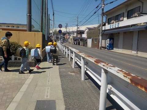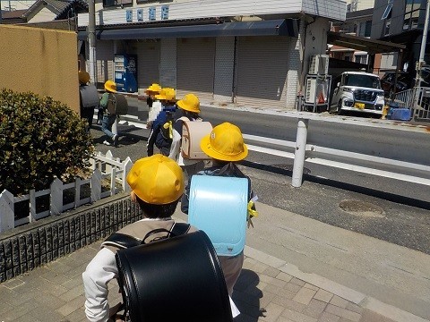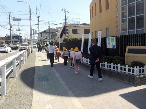 集団下校の様子です。昨日入学した1年生がはじめて下校します。明日も元気に登校してくださいね。