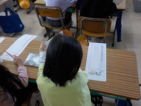 自分の名前を練習しています。ていねいに書いています。