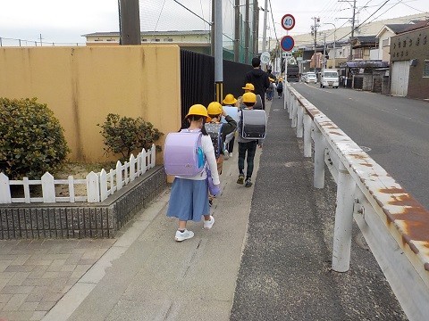 集団下校の様子です。今日もがんばりました。明日も元気に登校してくださいね。