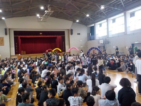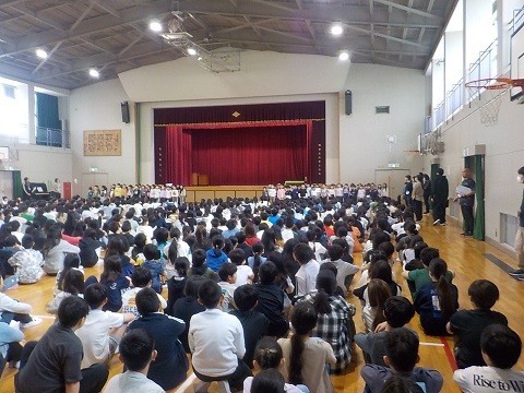 対面式の様子です。6年生児童が中心となり、準備や運営を行いました。1年生からも、2~6年生に向けての言葉がありました。