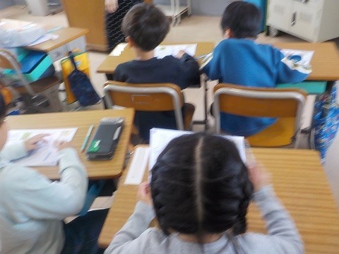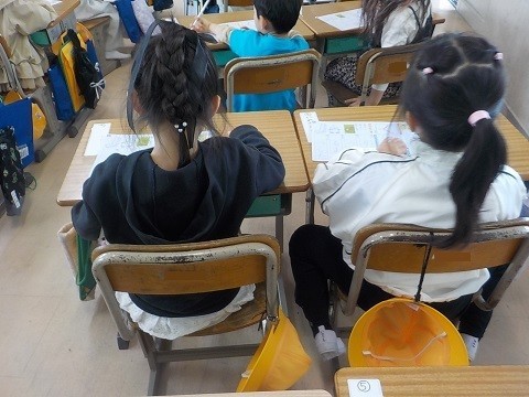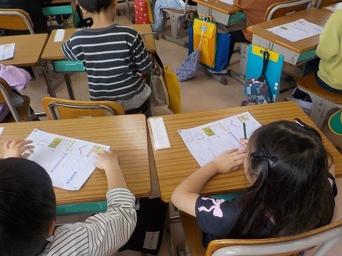 ひらがなの練習がはじまっています。ワークシートに、ていねいに書いていました。
