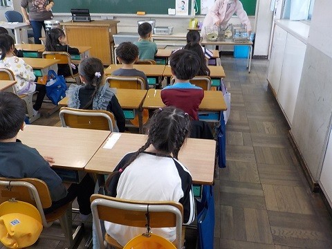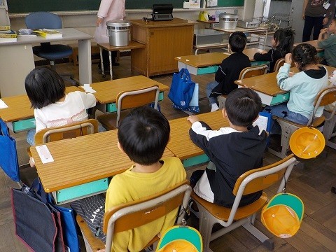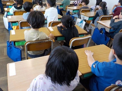 1年生 生活 公開日 2026/04/14 更新日 2026/04/14 1年生 栄養教諭の先生が、給食についてのお話をしてくれました。給食エプロンの着方や、準備片づけのお話を聞きました。明後日16日(木)から、給食がはじまります!