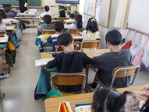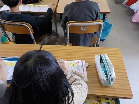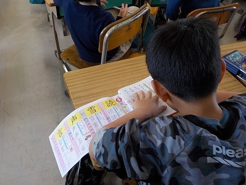 漢字の学習です。読み方や書き順を確認した後、ドリルに練習していました。