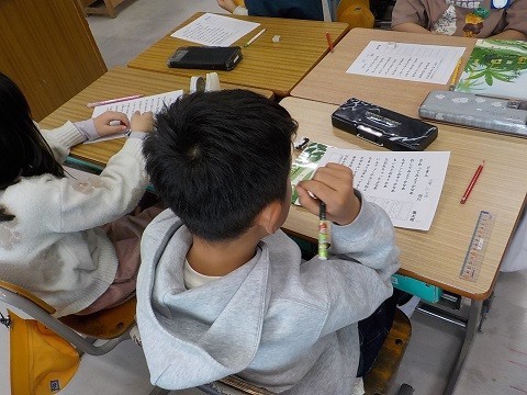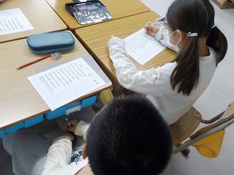 詩の学習です。「どきん」をグループで読み、感想を交流していました。