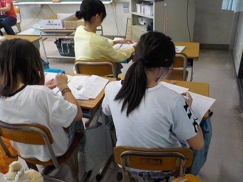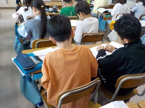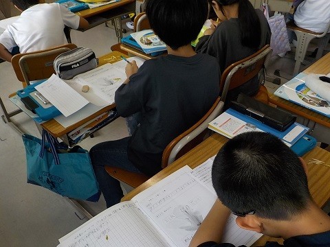 アブラナの実はどこにできるのかを調べ、ワークシートに記入していました。
