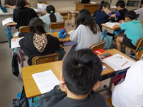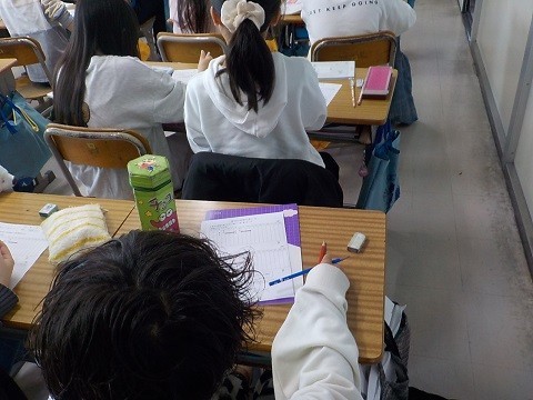 家庭科で、自分の時間の使い方について考えていました。ワークシートに記入したことを交流しています。