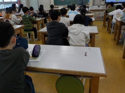 家庭科の授業がはじまりました。5年生でどのようなことを学習するのかを確認していました。