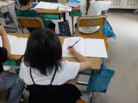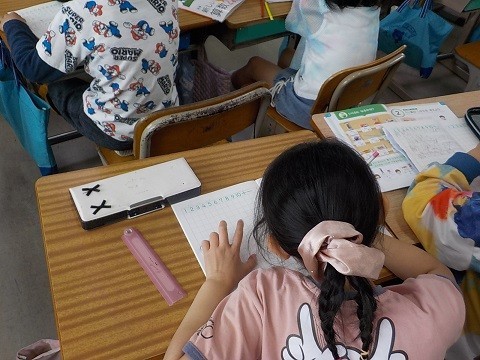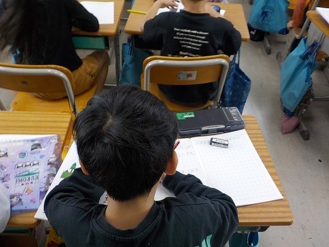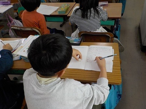 35+29の筆算の方法について考えていました。ノートに考えを書いています。