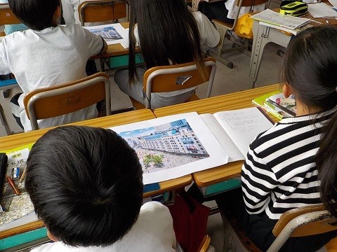 大阪府の商業や工業の学習です。資料をみて、気が付いたことを交流していました。
