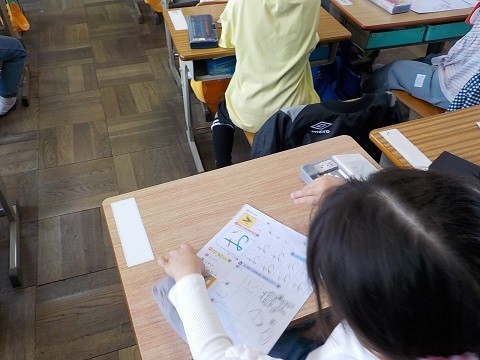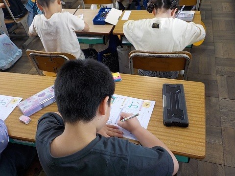 ひらがなの学習です。ていねいに書いています。