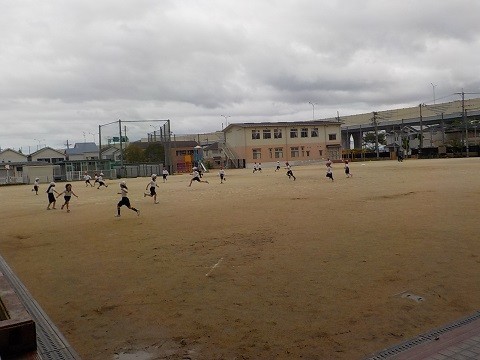 2年生 体育 公開日 2026/04/27 更新日 2026/04/27 2年生 早朝は雨が降っていましたが、2年生が体育を行う頃には運動場が使えるくらいになっていまいした。50mを計るようです。まずは準備運動を行い、体を慣らしていました。