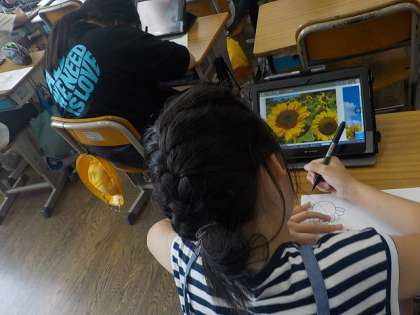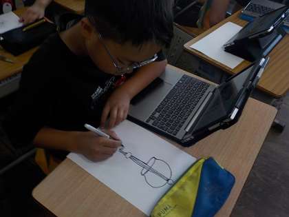 夏に関してタブレットで調べたことを、絵に描いていました。ていねいに描いていました。