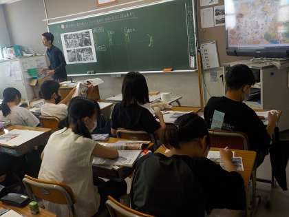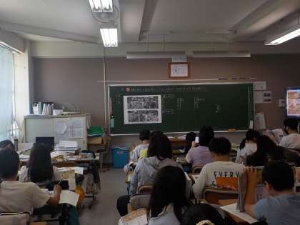 歴史です。縄文時代と弥生時代のイラストを比べて気が付いたことを交流していました。