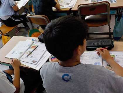植物の学習です。教科書で学習のまとめを行っていました。実験を行うときの条件等について、確認していました。