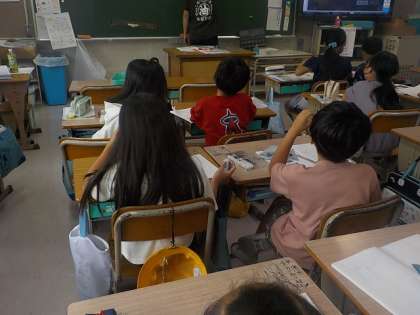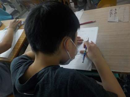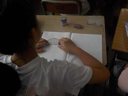 角度を測る学習です。分度器を使い、調べています。メモリの読み方に気を付けて、がんばってください!