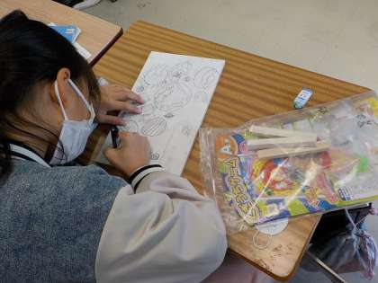 くぎうちトントンに取り組んでいます。下描きをがんばっています。