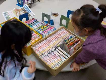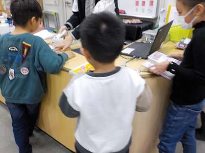 図書室に来ました。冬休みに借りた本を返却した人から、読みたい本を選んでいました。