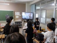 テレビ朝礼の様子です。まずは元気よく校歌を歌いました。校長先生からは、教育実習生...