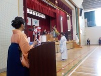 修了式の後、この3月で久世小学校を離れる先生方の紹介がありました。
