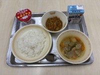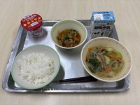 ごはんとうがんのスープドライカレーヨーグルト牛乳